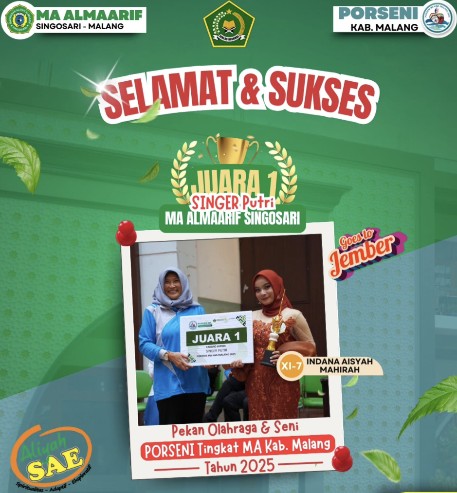 Juara 1 Singer Putri PORSENI MA Kab. Malang 2025 adminJanuary 4, 2025 Selamat & SuksesSINGER PUTRI✨✨Kontingen MA Almaarif SingosariDalam PORSENI tingkat Kab. Malang tahun 2025 Facebook Twitter WhatsApp Pinterest